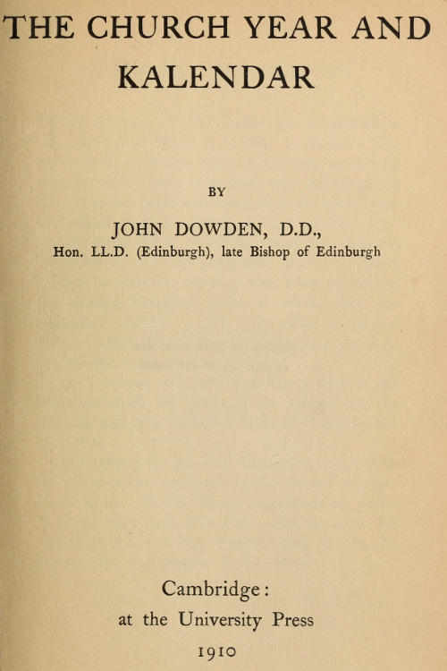 [The manuscript of the present volume was sent to the press only a few weeks before the lamented death of the author, and therefore the work did not receive final revision at his hands. In its original draft the manuscript contained a somewhat fuller discussion of some of the topics handled, e.g. the work of the mediaeval computists, and such technical terms as ‘Sunday Letters,’ ‘Epacts,’ etc., as well as a fuller treatment of the various Eastern Kalendars. Exigencies of space, however, and the scope of the present series, made it necessary for the author to curtail these portions of his work, while suggesting books in which the study of these topics may be pursued by the student. The Editors have endeavoured, as far as possible, to verify the references and to supplement them, where it seemed necessary to do so. In a few cases they have added short additional notes, enclosed in brackets, and bearing an indication that they are the work of the Editors.]