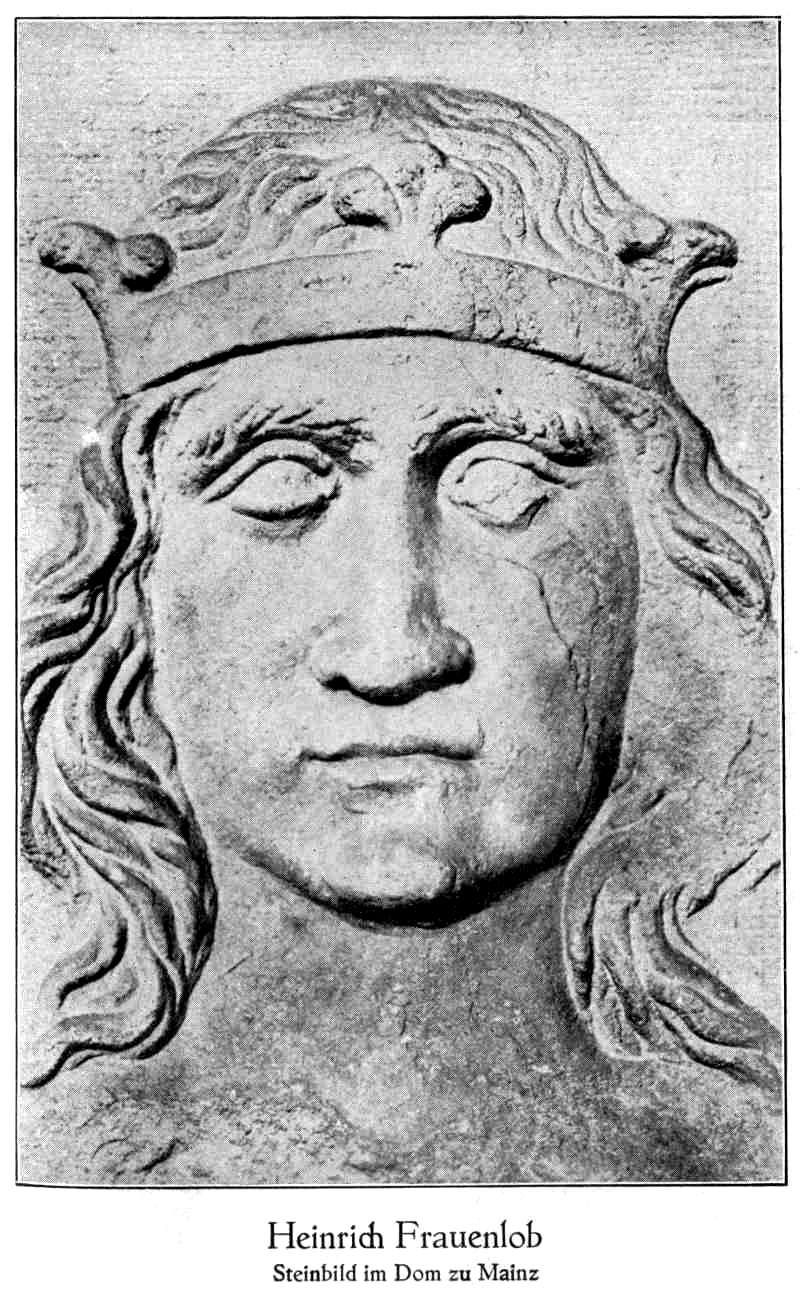 Hij was een waardig domheer in het oude Mainz, daarbij een zanger bij de genade Gods, die tallooze vrome hijmnen dichtte en toonzette, ter eere van de reinste aller vrouwen, doch tevens ook menige welluidene harptoon aan de wereldlijke liefde gewijd heeft. En daar hij in tegenstelling met vele dichters van zijn tijd in teedere vereering den naam "Frau" d. i. meesteres hooger schatte dan "Weib" wat slechts echtgenoote beteekent, heeft de nakomelingschap hem den naam "Frauenlob" geschonken en onder dezen is hij meer bekend, dan onder zijn werkelijken naam Heinrich von Weiszen.