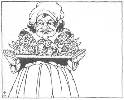 “Yes,” said Santa Claus, “I can do it by feeding you toy foods! I can have my cooks and my bakers make such tiny cakes and pies, that if you eat them one at a time, you will grow smaller and smaller. It will not be easy and you may have to go hungry at times, but in the end you will be just the right size. You can play with the other boys and no one will laugh at you. Then you may return to your father and mother!”