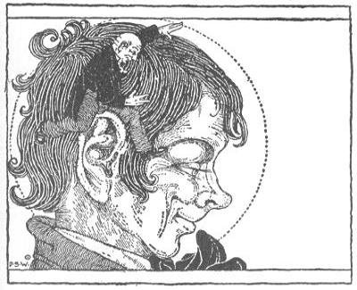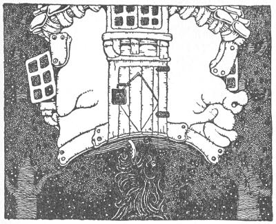 Before he left for school in the morning his parents always kissed him good-by affectionately. The parting took place outdoors in front of the house. Snythergen would bend over and place his broad hands on the ground, palms up. His father would stand on one hand and his mother on the other, holding tightly to their son’s coat sleeves. Then Snythergen[7] would raise his arms, lifting his parents until they were on a level with his face.