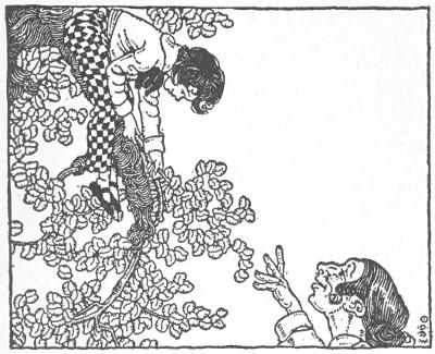 “I supposed you knew I had. Every boy has to have them. I used to steal away at night in my tree suit and go home when you and Sancho Wing were fast asleep. I would brush my[139] branches on the second story windows until father and mother looked out. I did not dare tell them it was I for fear they would want to send me back to school, and I feared father might spank me.”