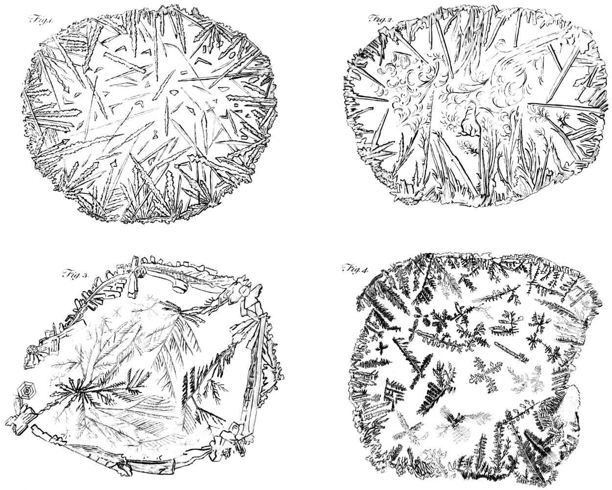 From the wonderful organization of animals, and the curious texture of vegetables, we proceed to the mineral kingdom, and take a cursory view of the configuration of salts and saline substances, exhibiting a few specimens of the beautiful order in which they arrange themselves under the eye, after having been separated by dissolution; every species working as it were upon a different plan, and producing cubes, pyramids, hexagons, or some other figure peculiar to itself, with a constant regularity amidst boundless variety.