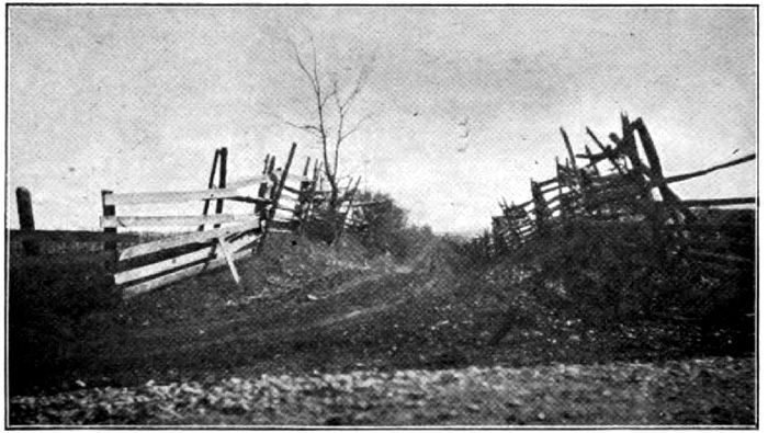 A blind horse is quick to observe and take fright at anything uncanny. He is the natural ghost-finder of the highways, and that voice was too much for the old roan. To him it sounded like something that had been resurrected. It was a ghost-voice, arising after many years. He shied, sprang forward, half wheeled and nearly upset the buggy, until brought up with a jerk by the powerful arms of his driver. The shaft-band had broken and the buggy had run upon the horse’s rump, and the shafts stuck up almost at right angles over his back. The roan stood trembling with the half turned, inquisitive muzzle of the sightless horse—a paralysis of fear all over his face. But when Bud came forward and touched his face and stroked it, the fear vanished, and the old roan bobbed his tail up and down and wiggled his head reassuringly and apologetically.