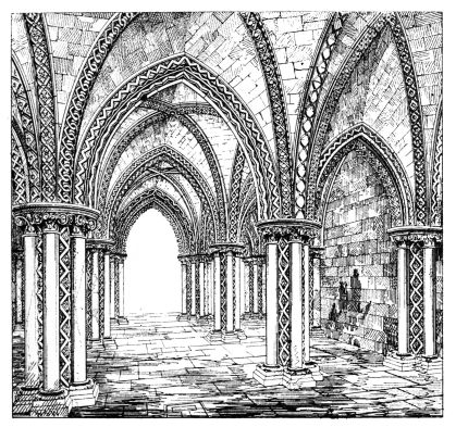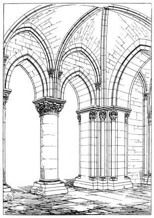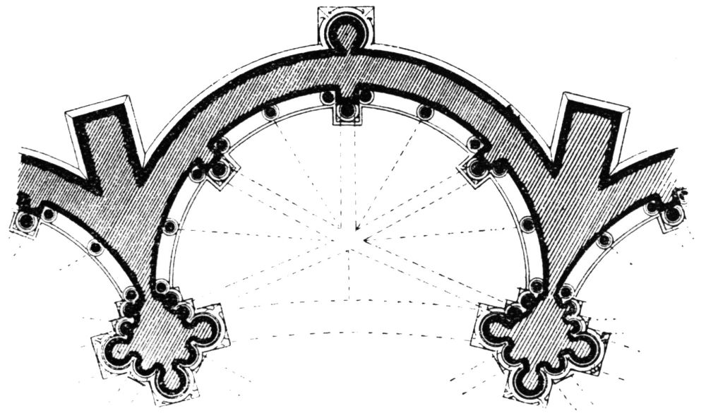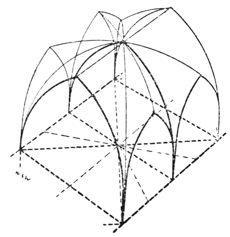 [6] There is an exception to this in the vaulting of curved spaces, such as the circular aisle round an apse in which the ribs assume a waved plan. (G. G. S.)