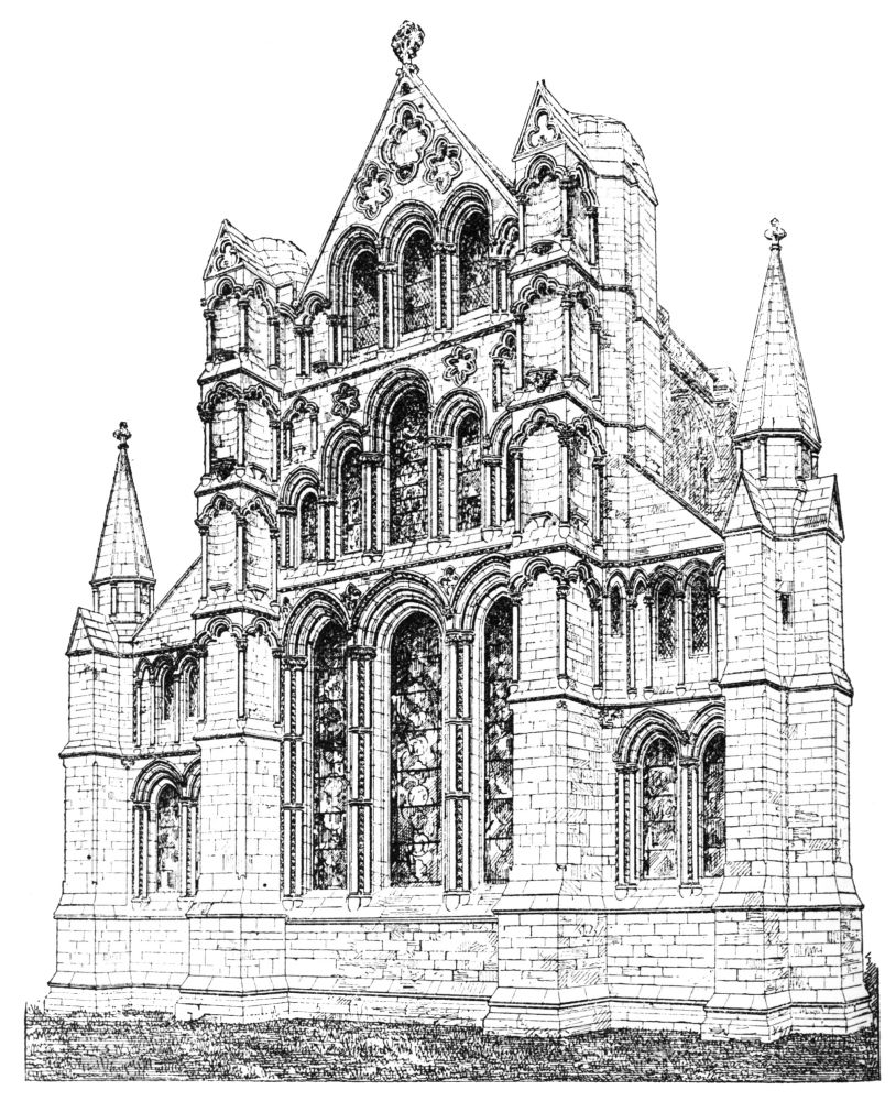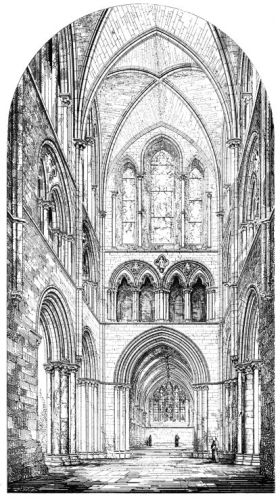 | St. Saviour’s, Southwark—Choir of Temple Church, London—Chapel at Lambeth—Westminster Abbey—Its Italian mosaic work, monuments, and ancient reredos—Chapel of St. Etheldreda, Holborn—St. Alban’s Abbey—Priory Church, Dunstable—Stone Church near Gravesend—Waltham Cross—Jesus Chapel, Cambridge—Ely and Peterborough Cathedrals—Warmington Church—West Walton Abbey—Crowland Abbey—St. Mary’s and All Saints, Stamford—Ketton, Grantham, and Frampton Churches—Lincoln Cathedral—Southwell Minster—Newstead Abbey—York Cathedral—St. Mary’s Abbey, and St. Leonard’s Hospital, York—Skelton Church—Beverley and Ripon Minsters—Fountains, Rivaulx, Whitby, Kirkham, and Guisborough Abbeys—Chapel of the Nine Altars, Durham—Hexham and Dryburgh Abbeys—Chapel of Holyrood—Elgin and Glasgow Cathedrals—Furness Abbey—Southern examples—Most great churches in France vaulted, not so in England—Universal excellence of workmanship from 1175 to 1400—Domestic architecture of France, Germany, Italy, and England—Influence of thirteenth century work on our artistic practice | Page 170 |