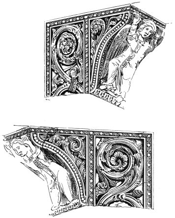 [23] The carving of the more advanced style here described belongs probably to the beginning of the thirteenth century. M. Viollet le Duc seems to think that the western façade was not begun till about 1218; but I think it must have been earlier, because the corbels and upper jamb-stones of the south-western portal, unlike the rest, are of exquisite Byzantine workmanship. (G. G. S. 1878).