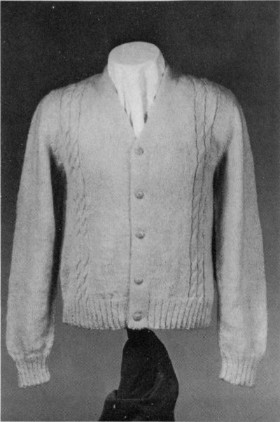 Sleeves: With No. 4 needles, cast on 58 (58-62) sts. K 1, P 1 for 2 inches, same as back. Add 1 st at end of last row 59 (59-63) sts. Change to No. 8 needles and start pattern, increasing 1 st at each side every ¾ inch 19 (21-23) times to 97 (101-107) sts. Knit until 12 (13-14) inches have been completed.