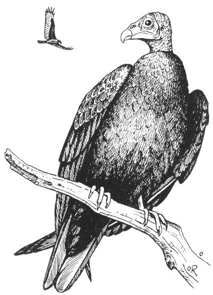 No other land bird soars so gracefully. Every air current carries this bird with little effort on his part. From high in the air, he scans vast areas for food, not forgetting to check his neighbors who are riding other currents in like manner. When one bird descends, every vulture in the air soon joins him.