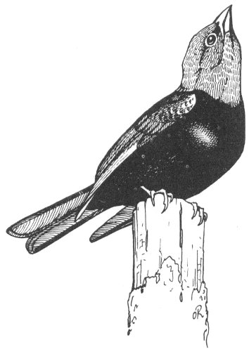 The season of the year will in some cases determine what birds are in your area. Color is important in identifying species. Look carefully at the silhouette or shape; is it slender or chunky, is the tail short or long? Compare its size with a bird with which you are more familiar. Habitat is important, too. One learns to look for Red-winged Blackbirds in wet marshes; for a meadowlark in pastures and fields. Behavior is a clue. Does it walk or hop; does it soar, does it walk headfirst down a tree, as is the habit of the nuthatch, or scratch among leaves like the towhee? Listen to the bird’s song and call note. With a little experience, distinctive songs may be identified. Each bird has its characteristic song.