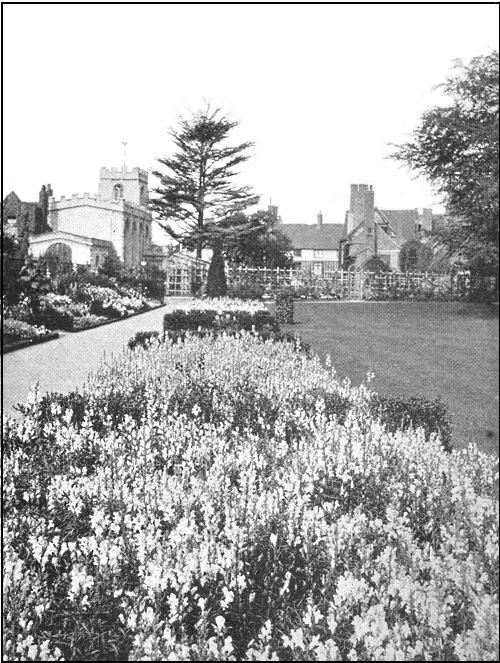 "Here, in the restored 'Knott Garden,' as everywhere in the grounds about New Place, flowers—Shakespeare's Flowers—will clothe and wreathe and perfume everything, all else being merely devised to set them off—musk-roses, climbing-roses, crab-apples, wild cherries, clematis, honeysuckle, sweetbriar, and many more.