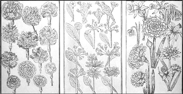 I have carefully read every word in Parkinson's huge volume, Paradisi in Sole; Paradisus Terrestris (London, 1629), to select from his practical instructions to gardeners and also his charming bits of description. I need not apologize for quoting so frequently his intimate and loving characterizations of those flowers that are "nourished up in gardens." Take, for example, the following description of the "Great Harwich":