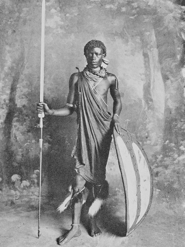 This practice of circumcision of the males at such a late age appears to prevail only among the Masai and Kikuyu, all other African races, so far as I can learn, following the Jewish custom and performing the operation during infancy. The method of performing the operation in vogue with these two tribes also differs from that in use elsewhere, so that a description of it may be of interest. On the day fixed for the ceremony the boys all turn out some time before daylight and are taken down to the river, where they have to stand for half an hour up to the waist in the ice-cold water until they are absolutely numb with the cold. They are then taken out and led to the operator, who nearly severs the foreskin with two cuts of his knife, then, folding the severed portion back, secures it on the under side with a thorn driven through 305the flesh. The boy then returns to his village and rests for a few days until the wound is healed. No boy is supposed to utter a sound during the operation, and it is probable that the numbing effect of the icy bath prevents their feeling any or very much pain. In the case of the girls also the bath in the cold river is a preliminary to the operation, and neither boys nor girls ever seem to suffer any serious consequences from this rough-and-ready operation. In the case of the girls the operation, which consists of the excision of the clitoris, is performed by an old woman, whose special duty it is to perform the operation with one of the razors used for shaving the head.