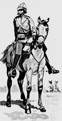 The British Cavalry is the smartest in the world. In the Cavalry of nearly all foreign armies, Germany for instance, and France, the horses are trained to a degree that is unheard of in the English arm; thus their men require but little skill in riding, and may be described as good soldiers on horseback. Ours, on the contrary, are born horsemen, and do not need to have their horses so thoroughly trained. The consequence is that when our men find themselves in a predicament not provided for by the Regulations, their natural qualities stand them in good stead, and by their brilliant riding and dash they turn to good account a situation which might otherwise offer serious difficulties. The British Cavalry is divided into Heavy, Medium, and Light, according to the size and weight of the men. The Household Cavalry, 1st and 2nd Dragoons, are heavy, and are never quartered abroad, the Hussars are light, and all the rest are medium Cavalry.