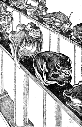 Greaves frowned after him. Then he jerked his head to Adelie. "Come on," he said and they, too, walked quickly down the length of the court of the conquered monsters. And for the first time since their creation the pillared gargoyles did not have to bear the sight of Man.