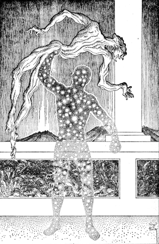 An old man's gruff voice answered him from the other side of the beast-couch. "They won't spring down to devour you—you needn't be afraid of that." Two men came into view, one old, one young and very slim. The old one rapped the couch with his knuckles. "This tended you in your sleep. It is made in the shape of the most ferocious race that ever rivaled Man. It is now extinct—as are all those others up there, for the same reason."