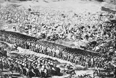 The French general was the Duke de Nevers, who was assisted by the Constable of France, Montmorency. To Coligni, the great admiral, was given the task of augmenting the garrison of St. Quintin. The troops of France were nevertheless greatly outnumbered by the Spanish forces. Flemings, Englishmen, and Spaniards, in{7} combined array, made desperate assault upon the defenders of St. Quintin. In a last rally the French formed squares, but the artillery of the Duke of Savoy broke up their ranks. Montmorency was among the prisoners who were seized by the Spanish, and it is recorded that he was treated with considerate courtesy.