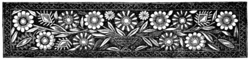 “‘At the upper end of the hall, where the floor was elevated exactly as much in respect as it was lowered in submission at the other, there the table for feasting the nobles stood; and well was it worthy of its station. It was one solid plank of white sycamore, shaped from the entire shaft of an enormous tree, and supported on squat columns of oak, ornamented with the arms of the Vernons, and grooved into the stone floor, beyond all chance of being upset by human powers. Benches of wood, curiously carved, and covered, in times of more than ordinary ceremony, with cushions of embroidered velvet, surrounded this ample table; while in the recess behind appeared a curious work in arras, consisting of festivals and processions and bridals, executed from the ancient poets; and for the more staid and grave, a more devout hand had wrought some scenes from the controversial fathers and the monkish legends of the ancient church. The former employed the white hands of Dora Vernon herself; while the latter were the labors of her sister Margaret, who was of a serious turn, and never happened to be so far in love as to leap from a window.’