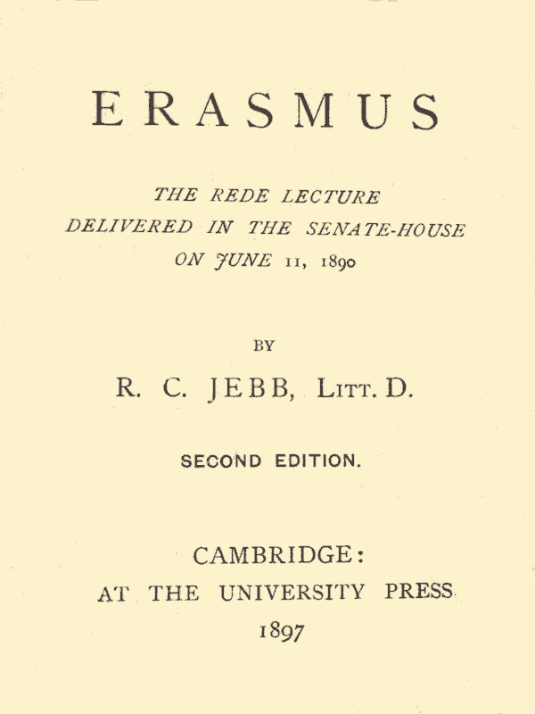 The boy afterwards so famous had been given his father's Christian name, Gerhard, meaning 'beloved.' Desiderius is barbarous Latin for that, and Erasmus is barbarous Greek for it. If the great scholar devised those appellations for himself, it must have been at an early age. Afterwards, when he stood godfather to the son of his friend Froben the printer, he gave the boy the correct form of his own second name,—viz., Erasmius. The combination, Desiderius Erasmus, is probably due to the fact that he had been known as Gerhard Gerhardson. It was a[3] singular fortune for a master of literary style to be designated by two words which mean the same thing, and are both incorrect.