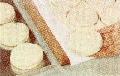 Roll dough about ¾″ thick, and cut with 3″ round cutter. Bake. Split and serve with desired filling.