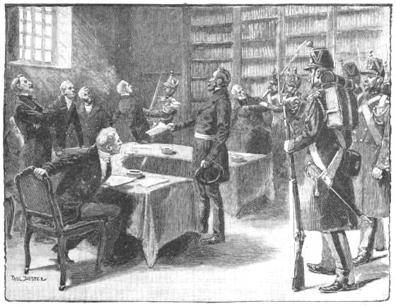 Gambetta fell from power as suddenly as he had risen to it. He appealed to the nation to use the interval for the collection of new forces, and caused the Delegation of the Government at Bordeaux to publish an electoral decree on the 31st of January, excluding from the possibility of being elected to the Assembly all persons who had stood in any official relation to the Second Empire. Against this outrageous decree Count Bismarck could not refrain from protesting, and fortunately he could appeal to the phrase in the article of the capitulation bearing on the question, which spoke of a "freely elected" National Assembly. It was a critical moment, for had M. Gambetta found a large body of Frenchmen unwise enough to back him in this course, great delays must inevitably have arisen, the legality and plenary authority of the Assembly might have been disputed, and perhaps the Germans might have been called in, or might themselves have stepped in, to arbitrate in a question of French internal politics. This consummation was happily avoided. The Government at Paris undertook to cancel the decree of the Delegation, and sent one of their number, Jules Simon, to Bordeaux, with instructions to publish and enforce their decision. Gambetta, finding his proceedings disavowed, resigned office on the 6th of February. In his stead Thiers was chosen to be Chief of the Executive. He appointed a Ministry, persuaded the Assembly to postpone all discussion as to the future Government of France, and proceeded to Versailles to agree with Count Bismarck upon the terms of peace.