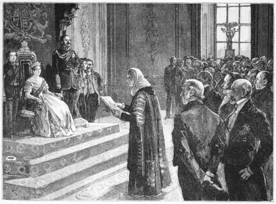The marriage of her Majesty's fourth daughter, the Princess Louise, to the Marquis of Lorne, the eldest son of the Duke of Argyll, was celebrated with great state at Windsor Castle on the 21st of March, 1871. For the first time since the passing of the Royal Marriage Act in 1772, a descendant of George II. married a commoner with the full consent and approval of the reigning Sovereign. The Queen stood by her daughter's side during the ceremony, which was performed by the Bishop of London, assisted by the Bishop of Winchester, and gave the Princess away.