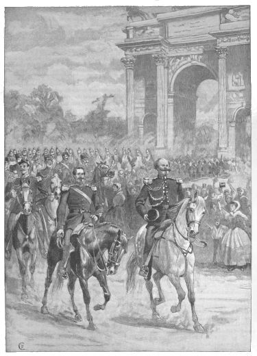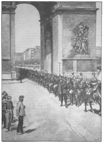 GERMAN TROOPS PASSING UNDER THE ARC DE TRIOMPHE, PARIS. (See p. 594.)
