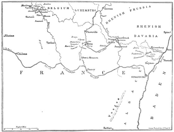 In the course of September a strange incident occurred. There was an individual of the name of Regnier, much attached to the Empire, who was said to have held some appointment in the household of the Empress. M. Regnier appears to have been a fanciful and vain personage; and the notion came into his head that he might become the humble but serviceable instrument of liberating the Emperor, re-establishing the Imperial system, and terminating the misfortunes of France. For this, it seemed to him, three things were necessary: the consent of the Imperial family; the negotiation of a treaty of peace between them and the Germans; and the liberation of Bazaine and his army in consequence of that treaty, who should act as an "Army of Order," put down the Republic and the men of the 4th of September, and replace the Emperor on the throne. Regnier first went to Chislehurst and propounded his views to the Empress, begging that she would furnish him with some kind of credentials. The Empress, it is plain, put little faith either in the man or in his project; however, after much importunity, she gave him the credentials he desired. Having obtained these, Regnier repaired to Ferrières, where the King and Bismarck were then quartered. He obtained an interview with the Chancellor and unfolded his plan. Bismarck was at first inclined to treat him as a dreamer and a meddler, but eventually thought the scheme of Regnier might be worth a trial. He accordingly gave him a general pass, which would allow of his passing through the lines of any German army that he might meet with, in order that he might go to Metz and sound Bazaine with reference to the project. Passing in this way through the lines of Prince Frederick Charles, Regnier entered Metz and sought an interview with Bazaine (September 23rd). The marshal, though he expressed himself cautiously, did not disguise the feelings of aversion and contempt with which he regarded the Government of the National Defence; and in consequence of Regnier's visit he sent Bourbaki, the commander of the Imperial Guard, that same evening out of Metz on a mission to Chislehurst. The emissary—Prince Frederick Charles being doubtless cognisant of the whole intrigue—found no difficulty in passing through the investing lines. Up to this point Regnier's little plan had apparently prospered, but now the bubble burst. The Empress was not a woman of that strength and sternness of character which, in the pursuit of an object of ambition, would lead her to brave obloquy and play high for a mighty stake. If she signed a treaty of peace as Regent, providing for the cession of Strasburg and Metz to Germany, the name of the Napoleonic dynasty, she thought, would be eternally execrated in France; and, after all, it was not certain that Bazaine could restore the Empire, or that his army, as a body, would support him in the attempt. She therefore absolutely declined to be a party to the scheme and it fell through. Bourbaki returned to France; but, instead of re-entering Metz, placed his sword at the disposal of the Government of Tours.