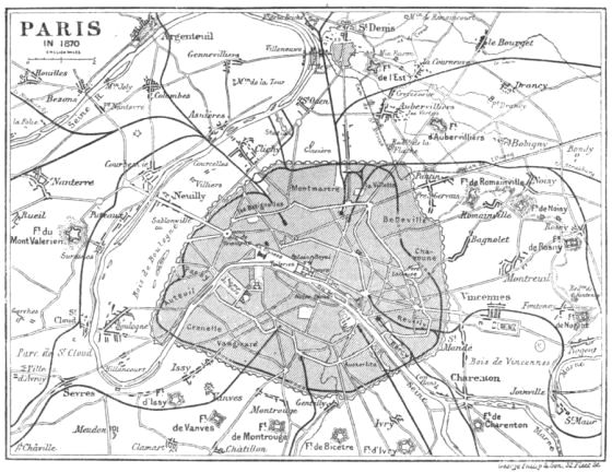 The bombardment began on the morning of the 5th of January. There were three attacks—that directed against St. Denis and its forts; that against Fort Rosny and other eastern forts; and, lastly, that against the three southern forts, Issy, Vanves, and Montrouge. Two hundred guns concentrated their fire against these southern forts. The unimportant attack on the east was maintained by sixty guns, while a hundred and fifty thundered on St. Denis from the north. Issy, on account of the too great distance between it and Mont Valérien, was the fort against which, more than any other, the Germans could bring to bear a concentric fire, and it was accordingly more knocked about than any of the rest. The most formidable of the German batteries, containing twenty-four pieces, was on the terrace of Meudon. From the whole of them an average shower of ten thousand projectiles per diem was rained during the continuance of the bombardment on the forts and on Paris. In the daytime the fire was chiefly directed at the forts, in the night it was turned against the city. The promise of Count Bismarck, expressed with brutal cynicism, that the Parisians should "stew in their own juice," was now fulfilled. Thanks to the distance, and to the number and extent of the open spaces within the enceinte, the mortality caused by the bombardment was far less than might have been expected; absolutely, however, its victims were not few. Ninety-seven persons (including thirty-one children and twenty-three women) not employed in the defence were killed by the bombardment and two hundred and seventy-eight (including thirty-six children and ninety women) were wounded. Among the public buildings and institutions injured by it were, the Jardin des Plantes, the Panthéon, the Val de Grâce, the Observatory, the Church of St. Sulpice,[591] and the Hôtel des Invalides. Nothing, says General Vinoy, could be more admirable than the behaviour of the people while the bombardment was going on. The effect of it was to harden rather than to weaken the spirit of resistance; and Trochu, forced as it were by the enthusiasm of those by whom he was surrounded, declared (January 6th) that he would never capitulate. The effect of the fire upon the forts was far less than the Germans had expected. Even of Fort Issy the defences were far from being ruined; it could still have held out a long time after the capitulation was settled. On the other hand the last sortie from Paris on the 19th of January was a disastrous failure and it was followed by grave signs of disaffection among the National Guard.