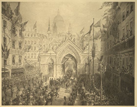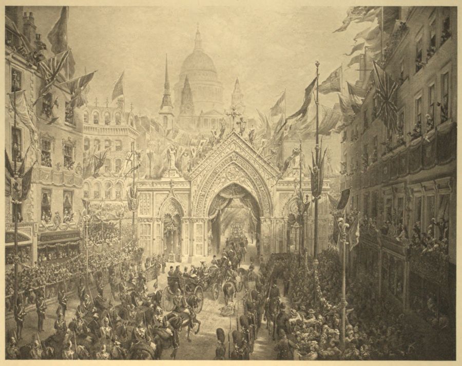 THE THANKSGIVING SERVICE, 27th OF FEBRUARY, 1872: THE PROCESSION AT LUDGATE HILL.