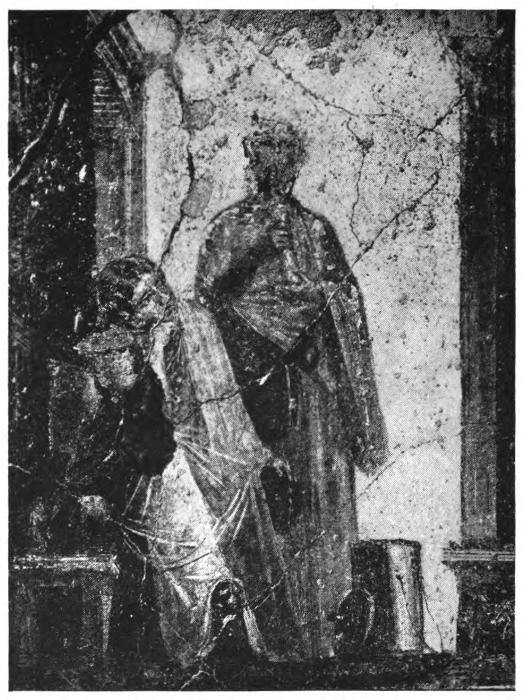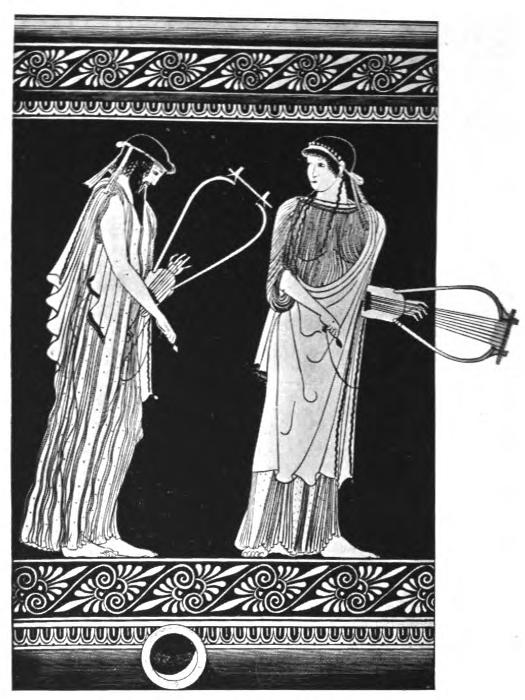 Supposed to represent Sappho and Alcaeus. Reproduced from Herrmann-Bruckmann, Denkmaeler der Malerei des Altertums, pl. 28