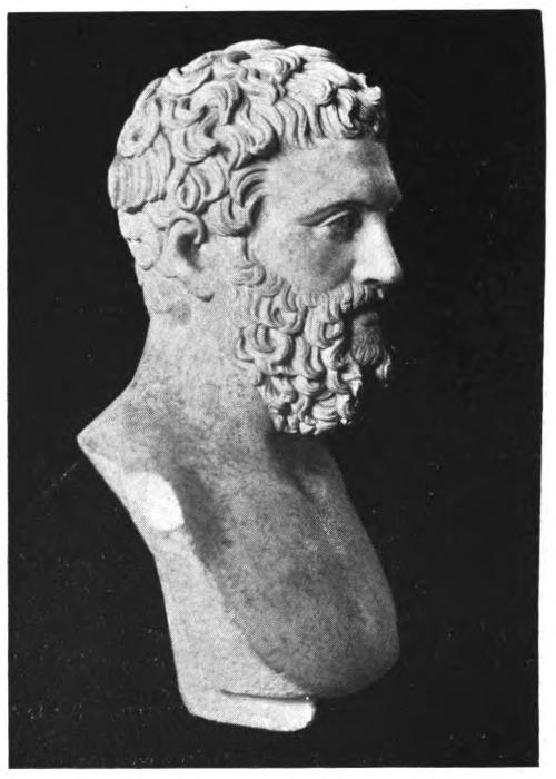 One of the seven wise men of Greece, in whose reign Sappho was perhaps banished to Sicily. The bust was found in Asia Minor in a Roman villa (100 A.D.). Formerly in Baltimore in the collection of David M. Robinson, now in the Museum of Budapest. Cf. The Annual of the Budapest Museum, II, 1919-1920, p. 3. For other replicas cf. Lippold, Griechische Porträt-Statuen, p. 72