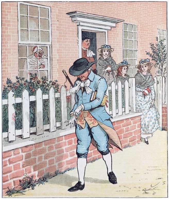 With his Daughter behind him, so rosy and fair;