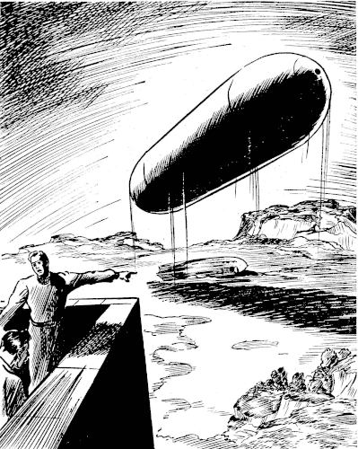 Perhaps ten minutes passed without a word being spoken; then, without sound or ceremony, the tremendous cylinder of metal drifted lightly upward. The men followed it for a short distance with their eyes; they might have watched longer, if their attention had not been distracted by an object revealed by the cruiser's departure.