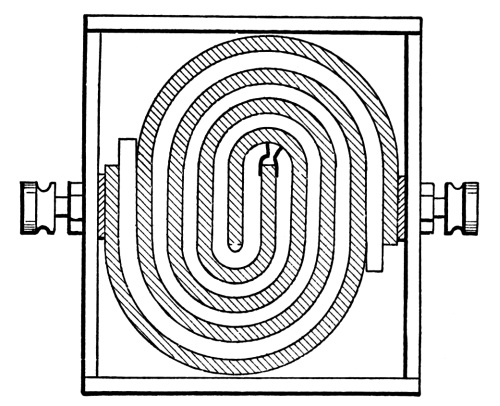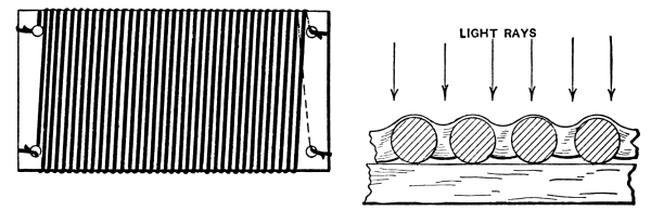 No mention has been made of just how the light affects the selenium to [Pg 19] reduce its resistance. This is still a moot point, one theory being that the light being electromagnetic in nature causes the molecules of the selenium to cohere in a manner similar to that of the radio coherer used in the early days of radio telegraphy. However the conduction thru a selenium cell is similar to that in an electrolyte and differs from metallic conduction. Considering this the light may act to ionize the selenium in some manner and make possible the more rapid interchange of the ions from the opposite terminals. Although a thorough understanding of the action taking place may lead to the improvement of selenium cells it is not within the scope of the present work to consider the various phases of this part of the problem, confining itself as it does more to the practical production of the cells.