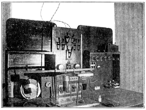 The application of selenium cells to the transmission of speech over a beam of light has received mention from time to time in the technical press principally in connection with the experiments of Bell and Taintor or Ruhmer. Ruhmer has succeeded in talking a distance of 4½ miles using a speaking arc at the transmitting station. The arc was mounted in the focus of a parabolic mirror, the microphone being connected inductively to the arc circuit by means of an induction coil. The beam of light was picked up by a second parabolic mirror and focused on a selenium cell connected to a battery and telephone [Pg 53] receiver. The voice waves impinging on the microphone will act to vary the intensity of the light beam sent out by the arc and in this manner affect the selenium cell at the receiving station which alters the strength of the current thru the receivers and thus reproduces the words.