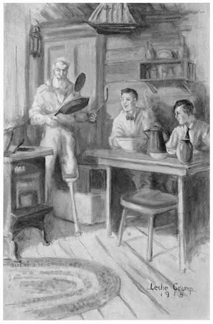 At this point came a violent thump-thump-thumping in the front room of the office, indicating that some one with a wooden appendage was approaching. All three looked up, expecting Old Mitchell to come through the door. They were not mistaken. The old lobsterman hobbled into the room, a broad grin wrinkling his face. But following immediately behind him was Ray’s Uncle Vance!