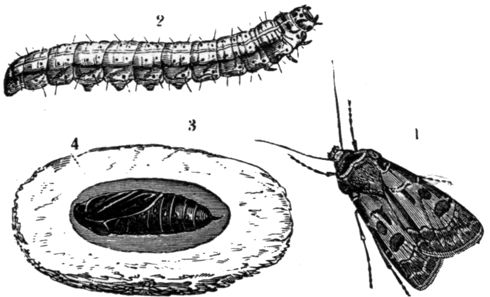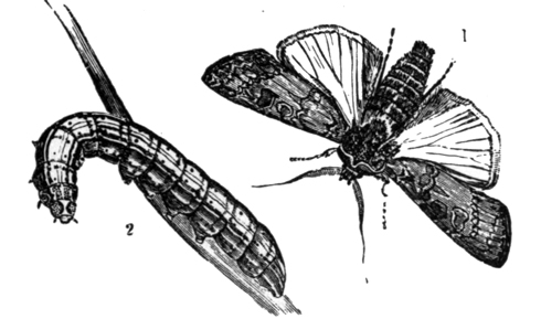 69. The larva of a noctuid moth which now and then appears in great numbers in America, marching over the country and destroying young grain crops, grasses, &c.