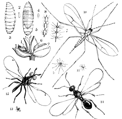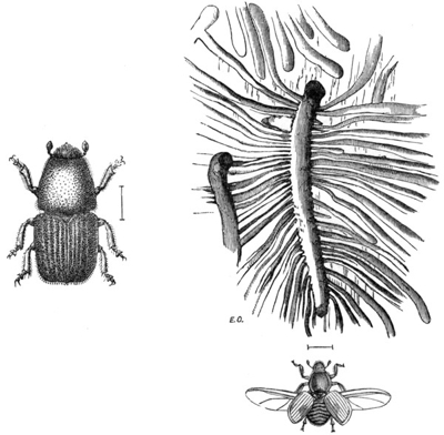 The figures of insects which have been introduced into the correspondence, to lighten it and increase its interest to the reader, have been chiefly borrowed from Miss Ormerod’s published works; and among them will be found a number of illustrations from Curtis’s “Farm Insects,” for the use of which her acknowledgments were fully given to Messrs. Blackie, the publishers.[2] The contents of this volume will afford ample evidence of Miss Ormerod’s intense interest in her subject, of the infinite pains she took to investigate the causes of injury, and of the untiring and unceasing efforts she employed to accomplish her object; also that her determinations relative to the causes and nature of parasitic attacks upon crops, give proof of soundness of judgment, and her advice, chiefly connected with remedial and preventive treatment, was eminently sensible and practical. Mainly by correspondence of the most friendly kind she formed a unique connecting link between economic entomologists in all parts of the world; and she quoted their various opinions to one another very often in support of her own preconceived ideas.