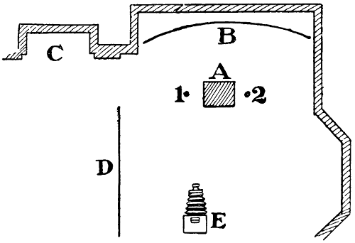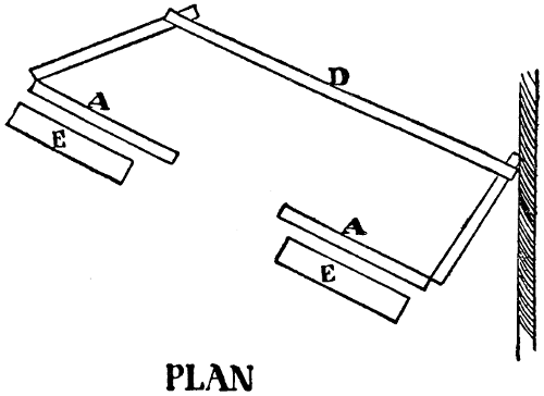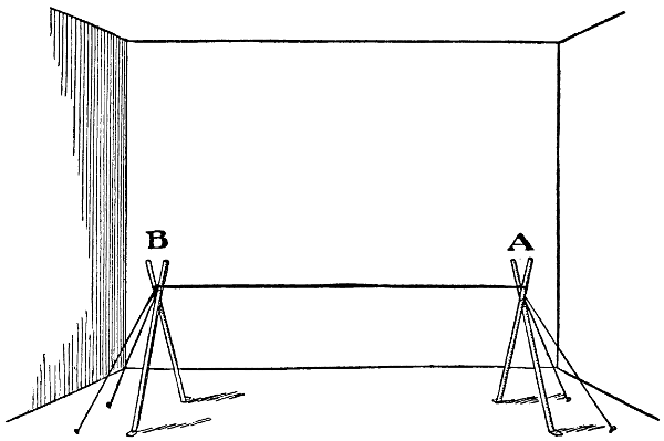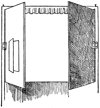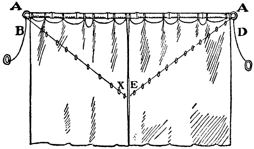 It is, of course, possible to act without a stage proper at all, especially if you happen to live in a house that boasts a double drawing-room with folding doors, in which case a curtain would also be a superfluity, for the doors could be closed and thrown open when the audience are in their places, though if a curtain should be deemed necessary it would be an easy matter to fix a rod from door to door.