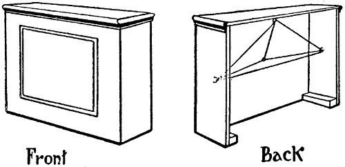 The following hints and suggestions, then, are not intended for the lordly Thespians who would aspire to flaunt their histrionic powers in public assembly-room or civic town-hall. For them there are those who make it their business to erect stages, provide “swell” scenery, and all the paraphernalia required.