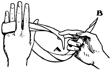 In this latter case a very good “shake” can be obtained by pressing the thumb firmly against the back of the hand, as shown in Fig. 1. This will arouse no suspicion in anybody ignorant of the meaning, though, if reciprocated, it forms an excellent sign of recognition.