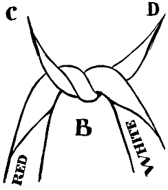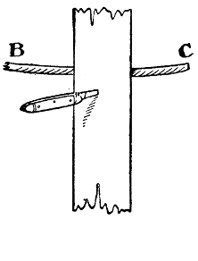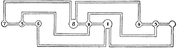 One party called A says the first syllable, and the other person B repeats the second, then saying the whole word. Supposing the pass-word chosen be Oxford, A would make some remark introducing the word Ox, whilst B, replying in a similar vein, would mention the last syllable “ford” and conclude by repeating the whole word. With this system it is almost impossible for an outsider to palm himself off as one of the elect, even if he has become acquainted with all the signs of the society.