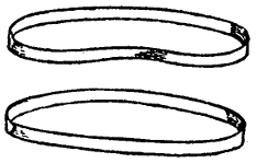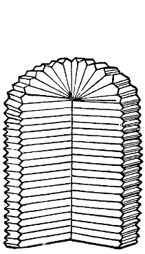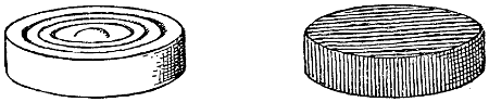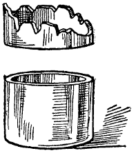 The checkers usually purchased have a molding on both top and bottom. It will simplify matters considerably if you can buy a set with one side only molded. By using the white men with the molding uppermost and the black men reversed, as in Fig. 5, the difference will be sufficient to enable the blind person to distinguish by touch.