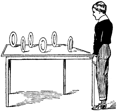 The same result can be obtained by glueing discs of cardboard or stiff paper, upon one side of each man, of one of the sets.