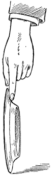 The brethren of a very respectable society, which still flourishes, are generally credited with knowing each other by a peculiar flourish of the hand when removing the hat, in a somewhat similar manner to that shown in Fig. 5. Others make the ceremony of blowing the nose of like importance.