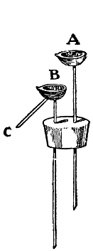 In the center of each piece a hole must be bored in the base, large enough to allow the man to be placed, and removed from one pin to another with ease. For this reason wooden chess men are preferable.