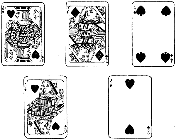 A very suitable game, calculated to amuse the player for hours, is Patience, under all its forms. For this the cards must be prepared somewhat differently, as in many games the first thing to be distinguished is the color.