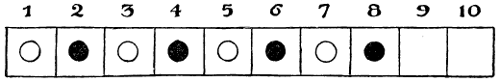 Owing to their construction, Dominoes really need no alteration to make them suitable for the blind, but care should be taken when[542] purchasing to see that the pips are cut deep into the ivory, so that the player can tell at a touch how many there are in the piece before him.