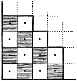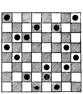 For the convenience of any ordinary person who may be playing with a blind opponent, the cardboard squares should be colored black with India ink.