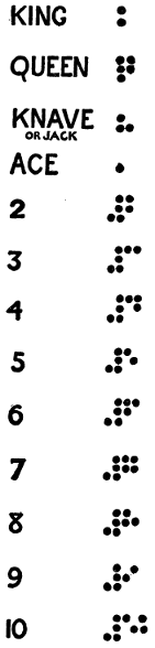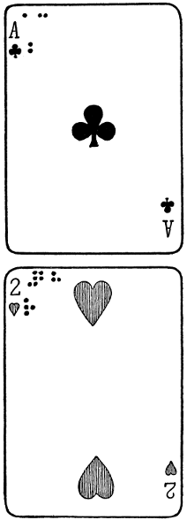 With the cards thus marked, any game of Patience can be played as easily by a blind person as by an ordinary player.